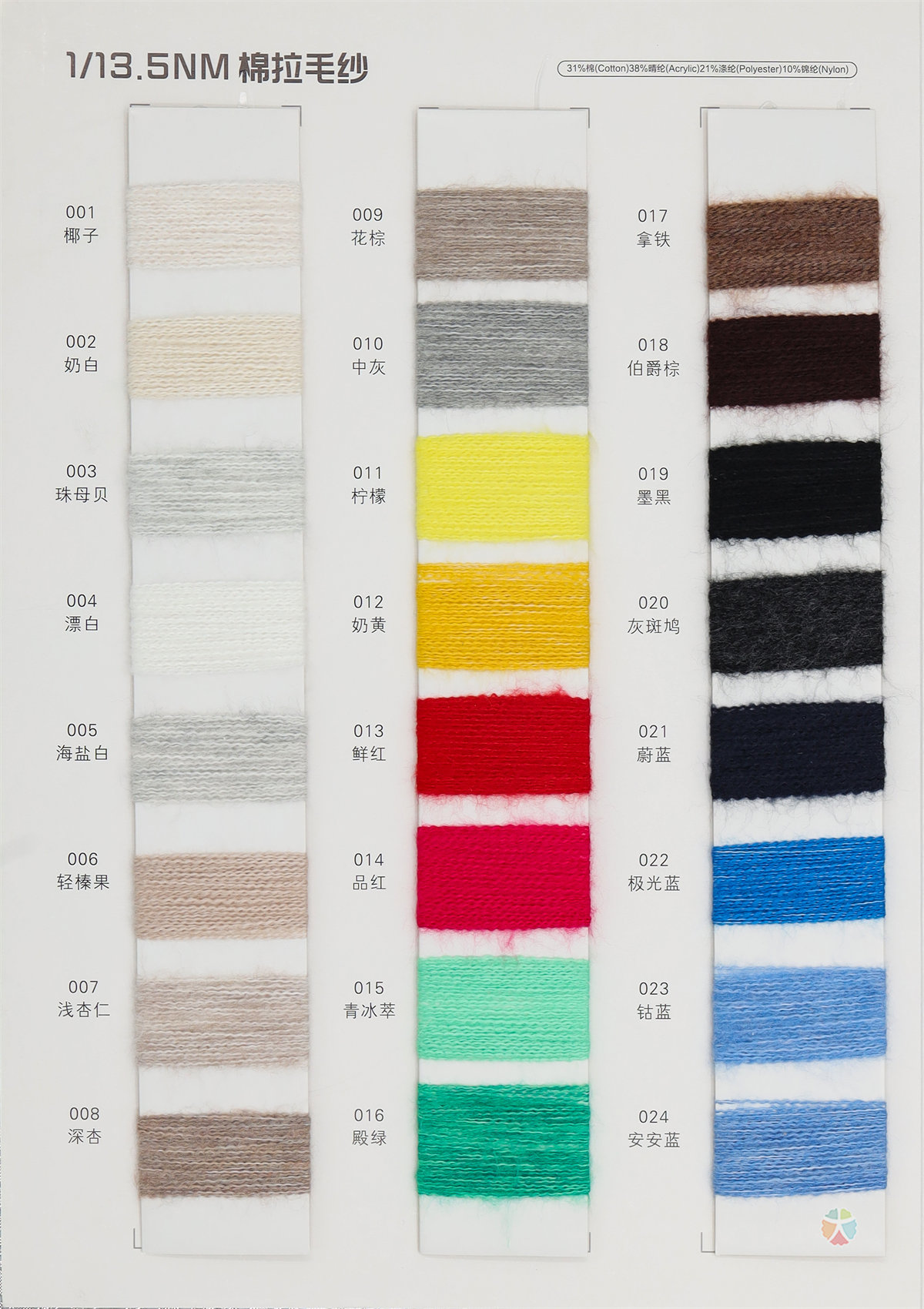成分:31%棉 38%晴纶 21%涤纶 10%锦纶